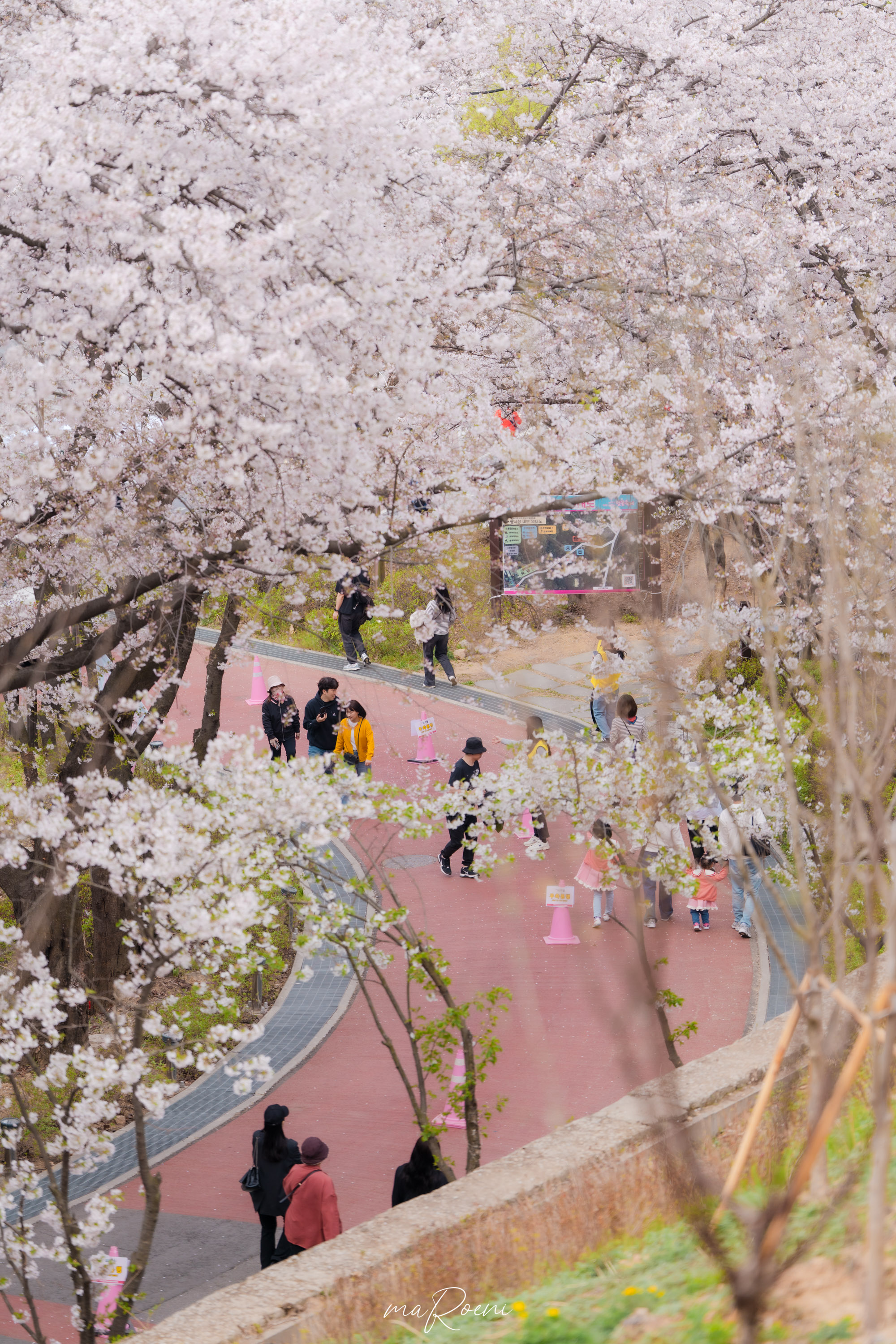 인천대공원쪽에는 벚꽃 개화상태가 들쭉날쭉인데, 여긴 그래도 개화상태가 매우 양호했다. 도당산 벚꽃축제는 1km가 될까 말까 한 언덕 위를 오르내리면 끝나는 정도의 코스라서 멀리서 찾아올 필요까지는 없는 스팟인데, 다른 사람들도 나와 같은 생각을 하고 계셨던 건지 오전 9시였음에도 사람들 정말 많았다!!